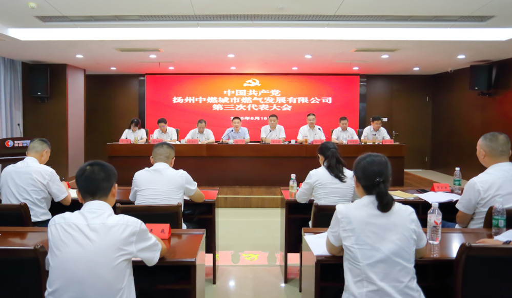 8月18日下午,揚州中燃公司召開第三次黨員代表大會。城控集團黨委副書記徐飛到會指導并講話,揚州中燃公司領導班子成員、黨員代表、列席代表參加會議。